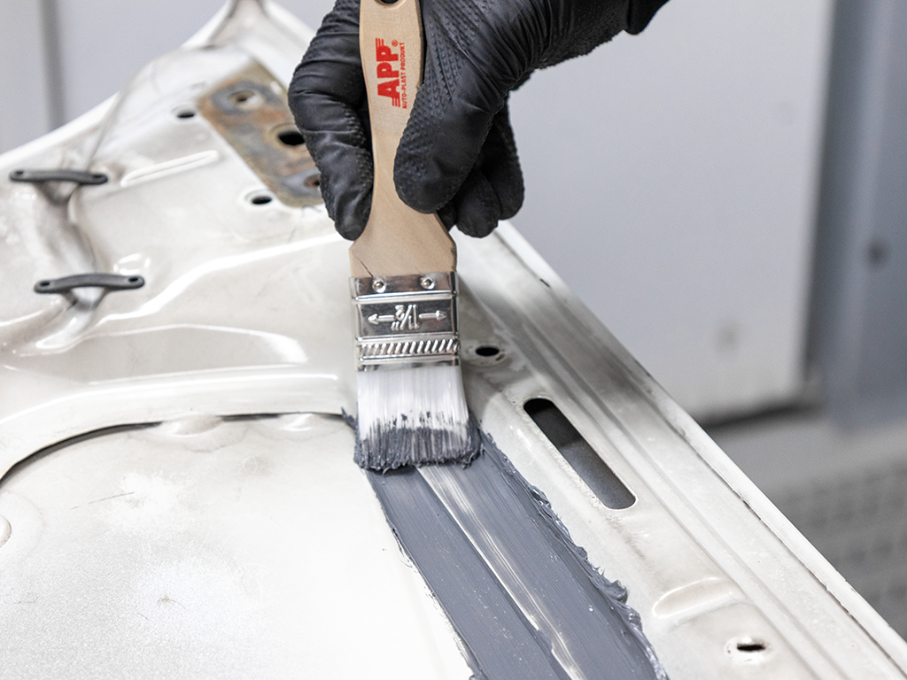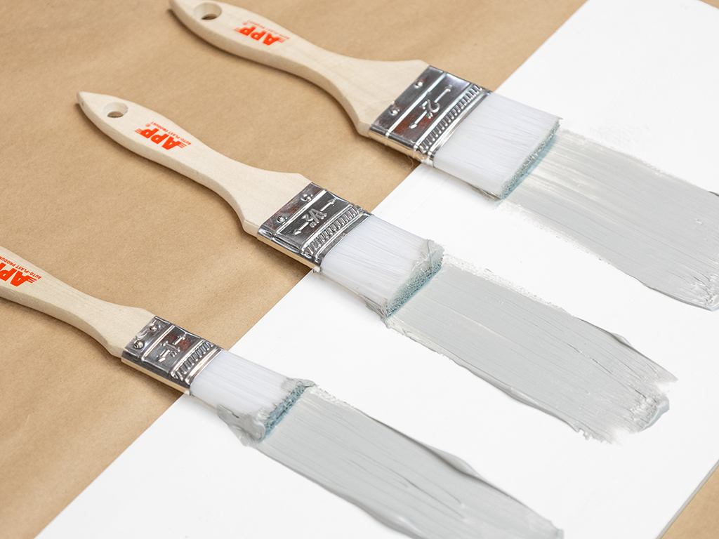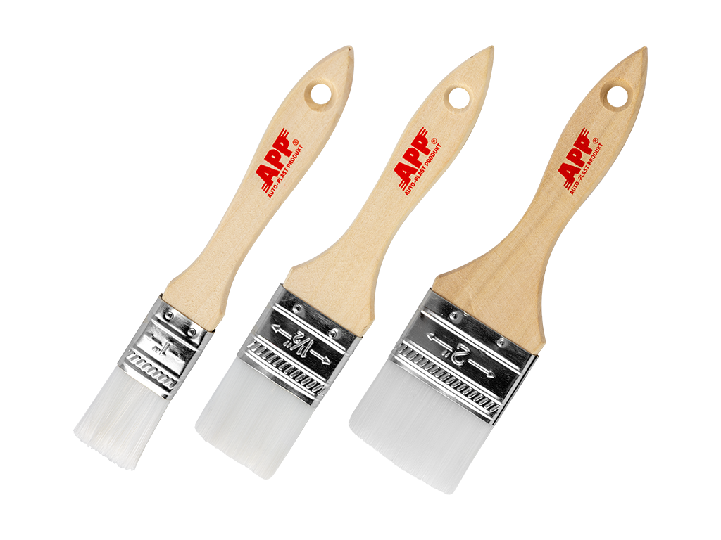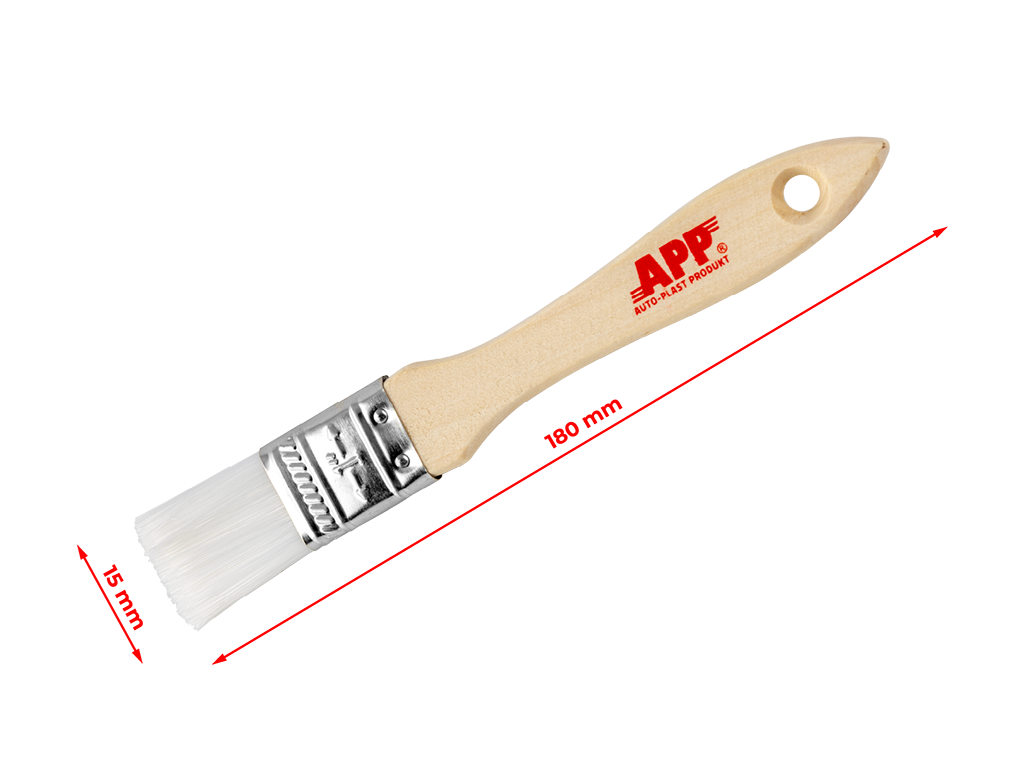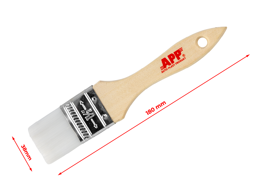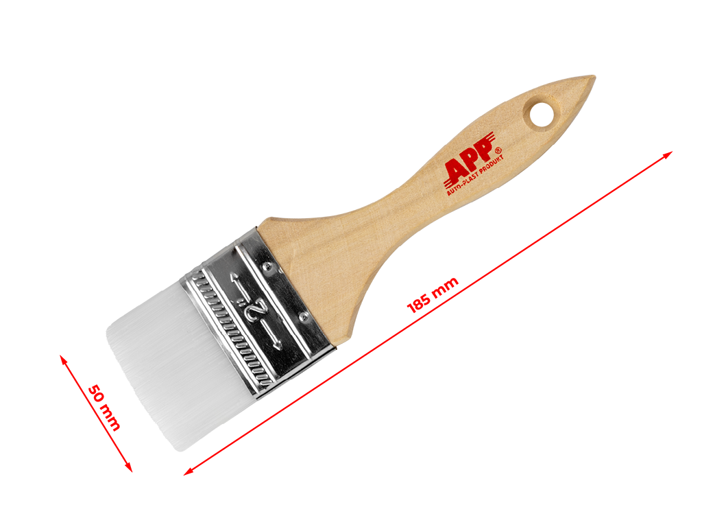 Pędzle płaskie z włosiem z tworzywa sztucznego (PET) przeznaczone do nakładania mas uszczelniających, klejów, bitumów oraz innych gęstych substancji. Trzonek wykonany z wytrzymałego drewna. Włosie z materiału PET (politereftalan etylenu) zapewnia równomierne rozprowadzanie materiału, wysoką elastyczność i odporność na działanie rozpuszczalników.