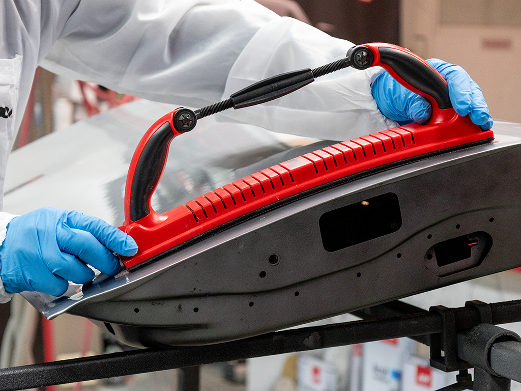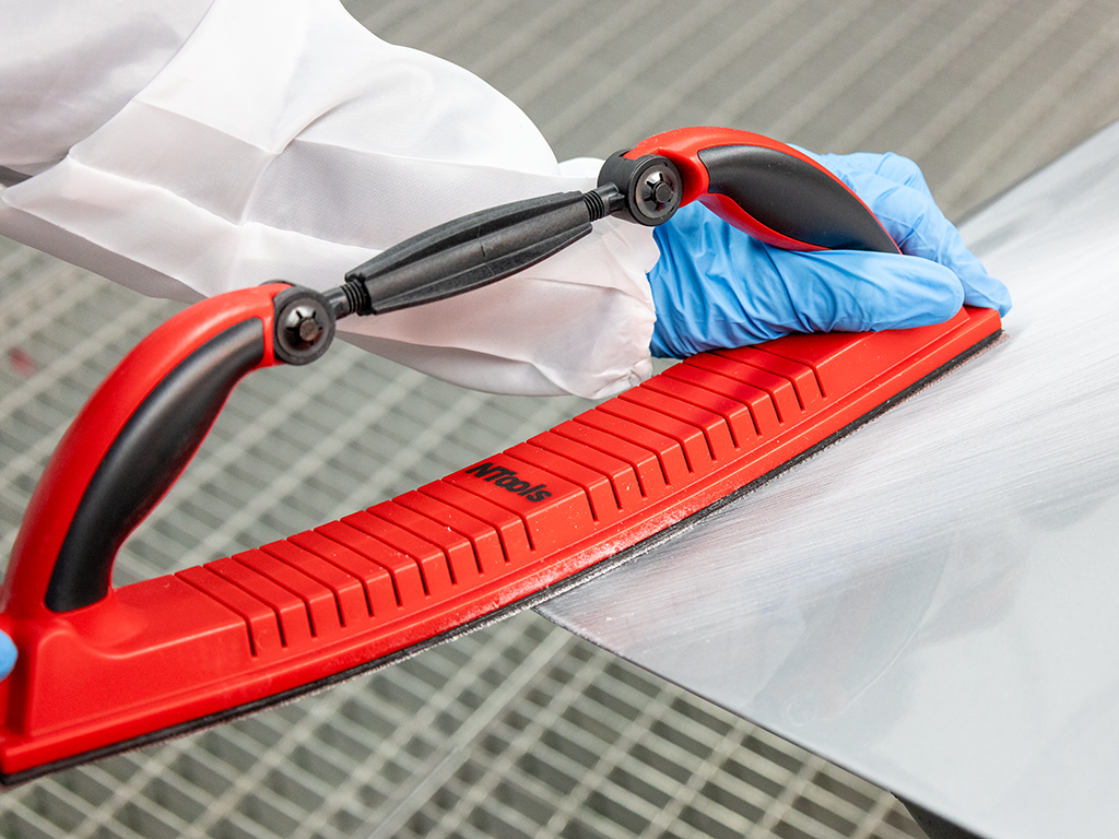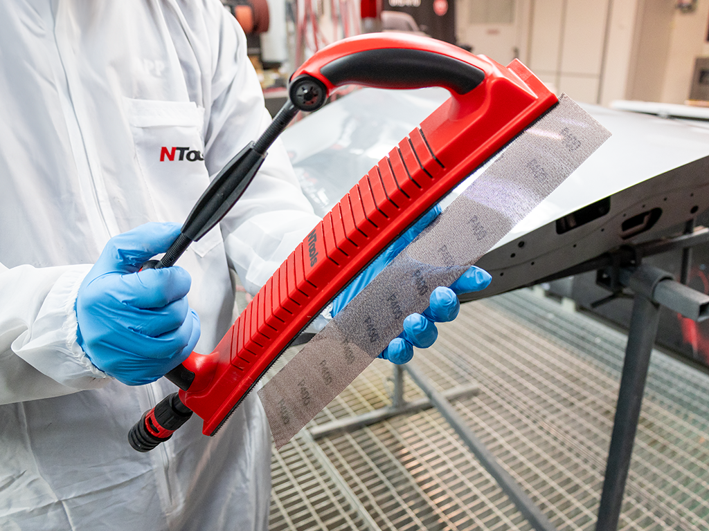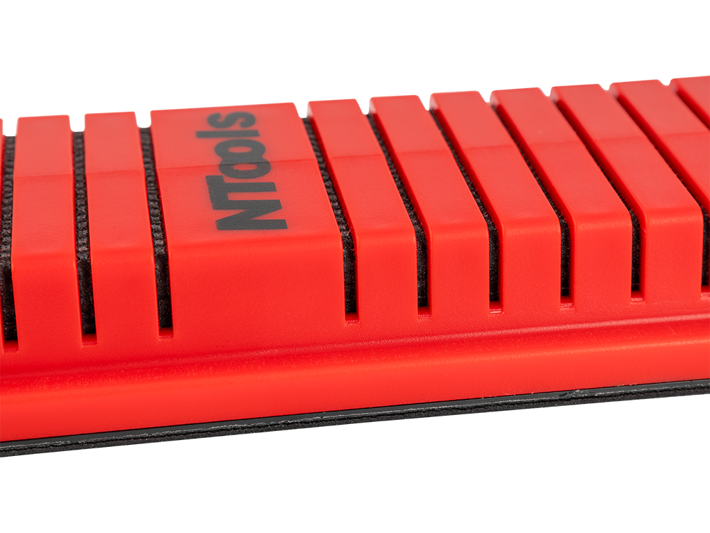 NTools HR R 400 to blok szlifierski przystosowany do odsysania pyłu z tworzywa sztucznego z rzepowym mocowaniem siatki ściernej lub papieru ściernego. Posiada system otworów ssących i króciec do podłączenia węża odsysającego pył. NTools HR R 400 posiada zabudowane żebra, którę usprawniają odsys pyłu. Zastosowana śruba rzymska umożliwia regulację kształtu płaszczyzny płyty roboczej. Mechanizm ten ułatwia obróbkę elementów wklęsłych i wypukłych o dużych powierzchniach.